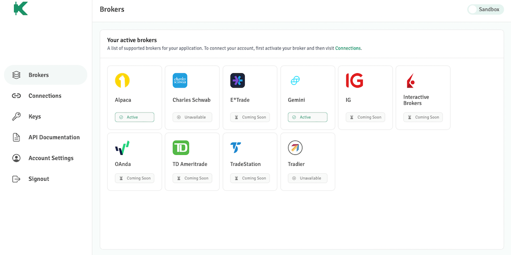 Kaisdaq provides a unified API that helps developers place trades, scan assets and list positions across different brokerages.