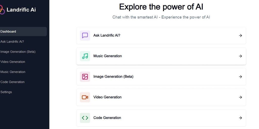 Landrific Chat & Create: Your AI companion for chat, art, video, audio, and coding. Unleash creativity with endless possibilities.