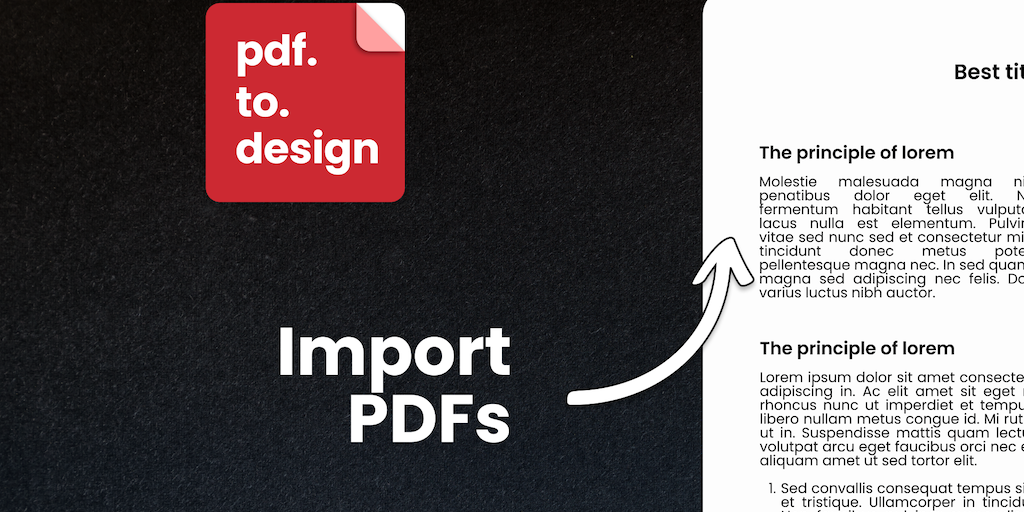 The only Figma plugin that imports PDFs into Figma with editable text layers! Choose between importing your PDF as editable designs or pixel-perfect images. Extract images and text from your PDFs, col