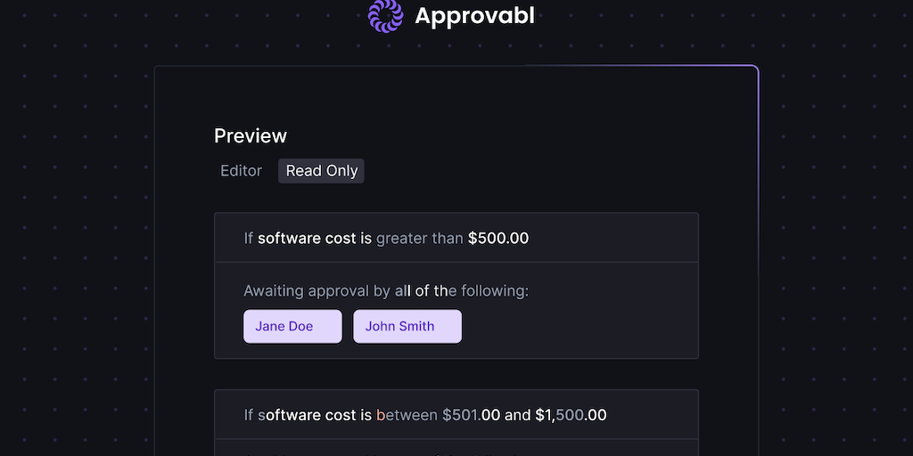 Approvabl is an easy way to embed AI powered approval workflows into the product you're building with custom controls, notifications, debugger, and more.