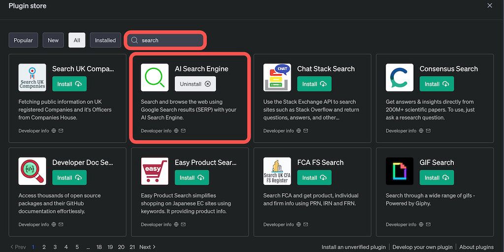AI Search Engine plugin supercharges your ChatGPT experience by letting you search and browse the web, from right inside of ChatGPT.