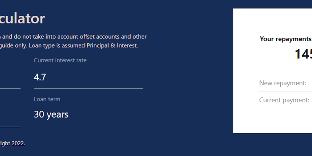 A simplistic interest rate calculator that won't sell your information to banks and brokers. Find out how much interest rate rises will affect you.