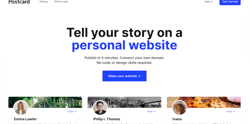 Postcard - Easiest way to make a personal website | Product Hunt
