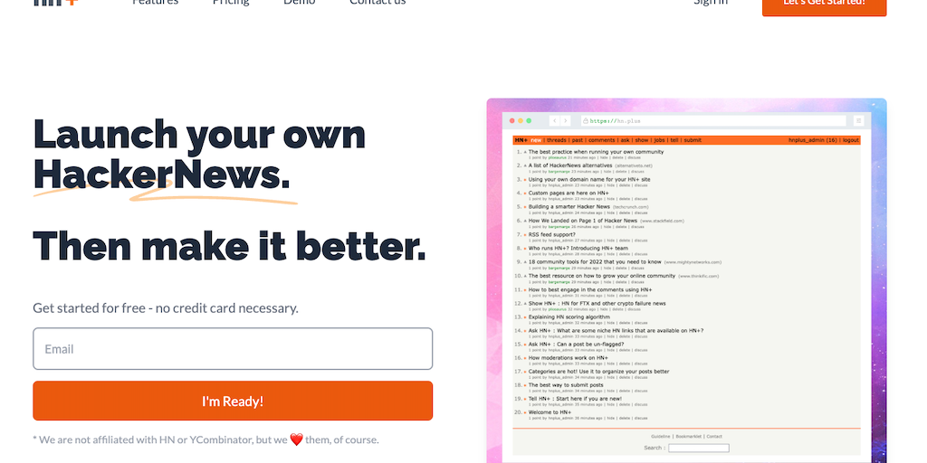 HackerNews (https://news.ycombinator.com) is an awesome community for startups and entrepreneurs. If you ever thought about creating your very own HN clone, we're here to help! HN+ comes with all the