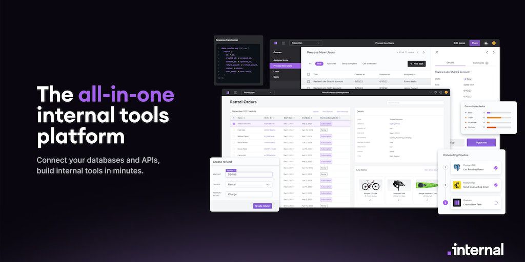 With Internal’s all-in-one platform, you can connect databases and APIs to build internal tools including workflows, tasks, automations, and custom apps. We also released a GitHub integration so teams