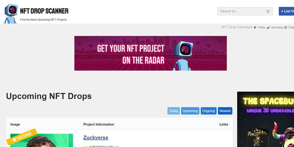 NFT Drop Scanner - Find the best upcoming NFT drops and list your NFT event | Product Hunt
