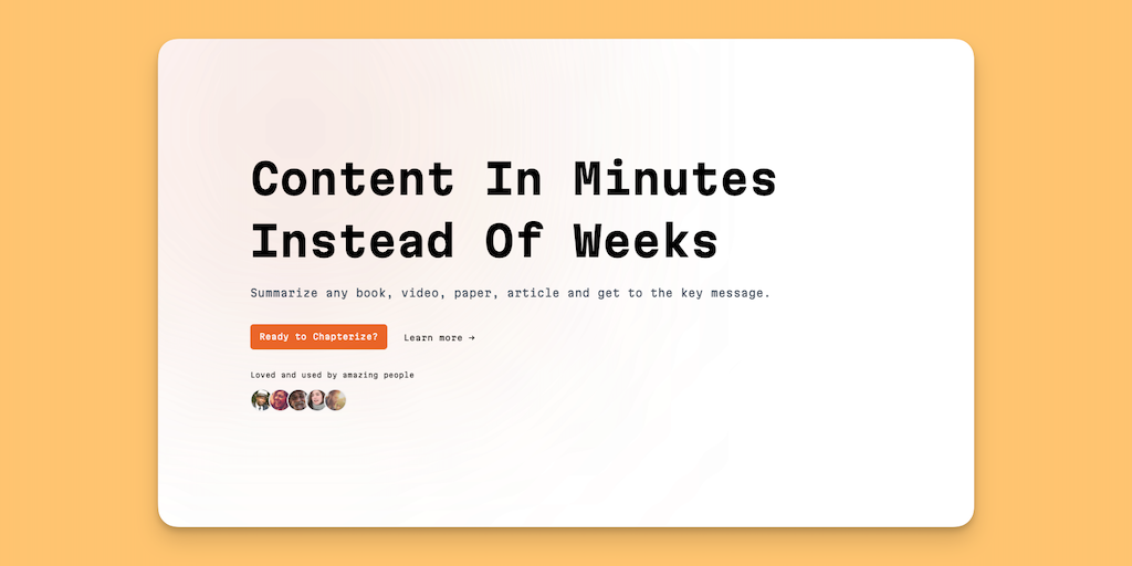 Chapterize - Summarize any book, video or blog and get to the key message | Product Hunt