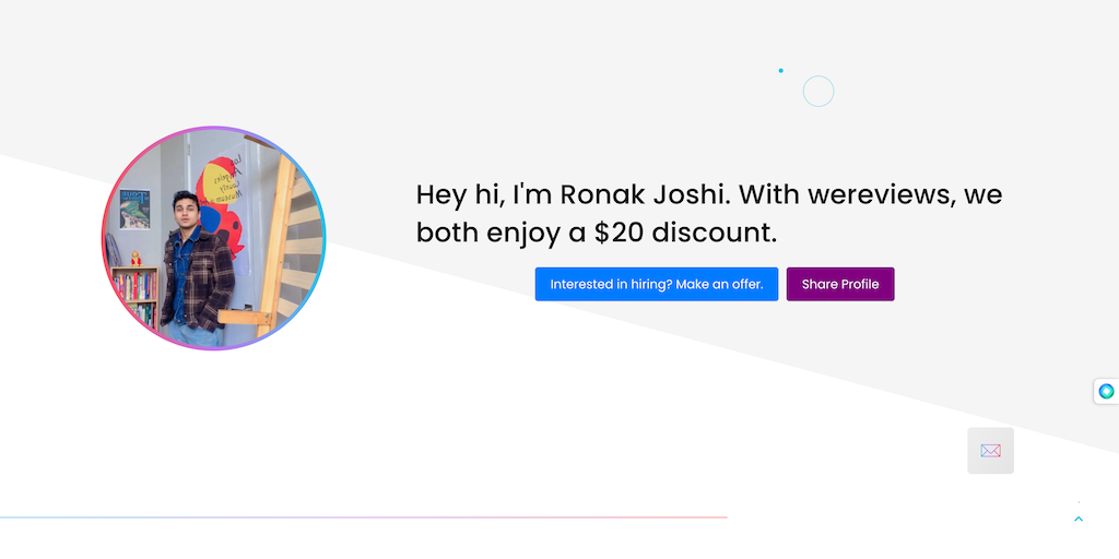 We assist you in obtaining feedback from clients, friends, and colleagues effortlessly See my profile here which took me 2 seconds to make - https://wereviews.co/a/64c83ac805532707a6b44add/