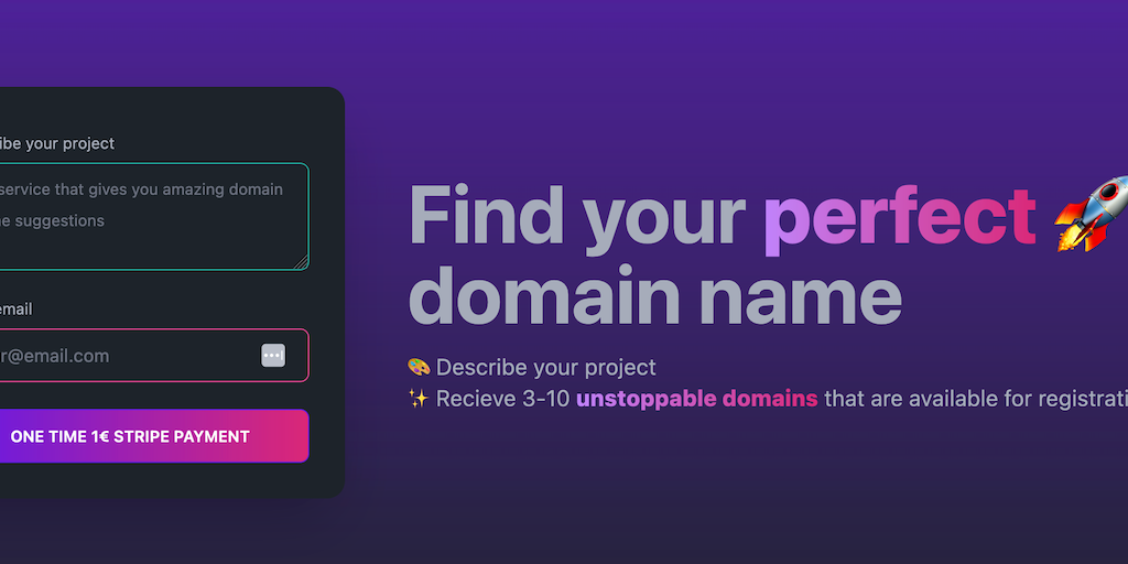 Stuck on naming your project? Let Rocket 🚀 Name 🧠 Ideas give you an unstoppable domain!