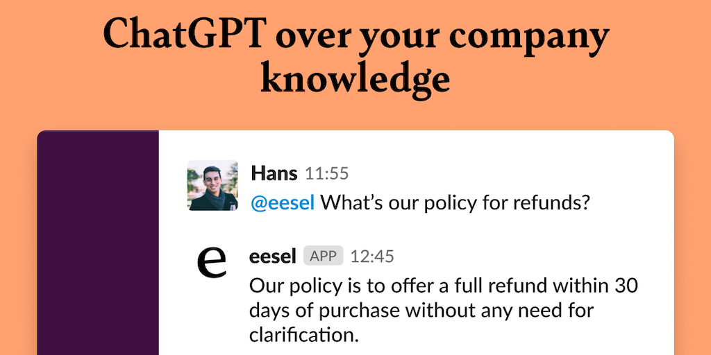 eesel AI - ChatGPT over your Slack, Notion, Google Docs and more | Product Hunt
