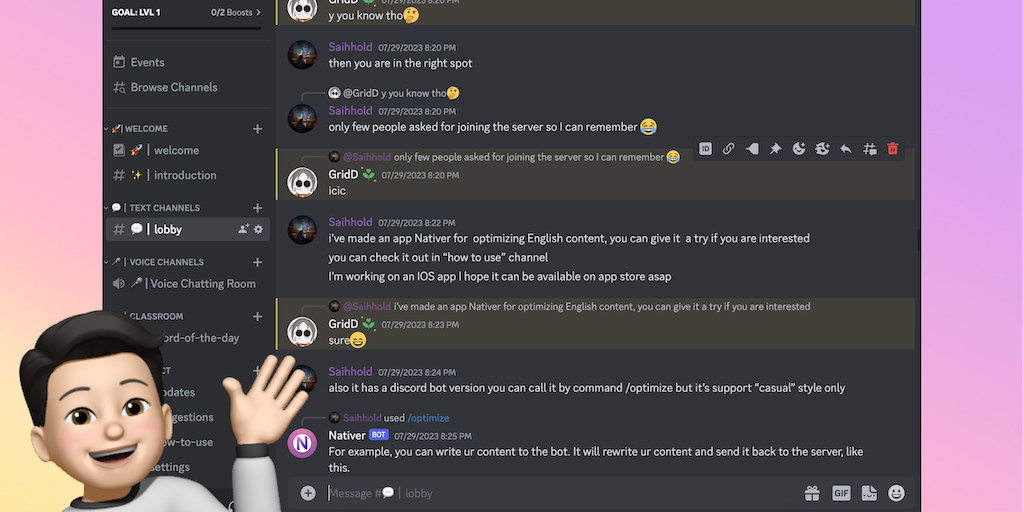 Nativer Discord Bot - Improve your English with the Nativer Discord bot🤖️ | Product Hunt
