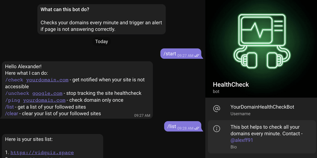 HealthCheck - Simple bot helps to check all your domains every minute | Product Hunt