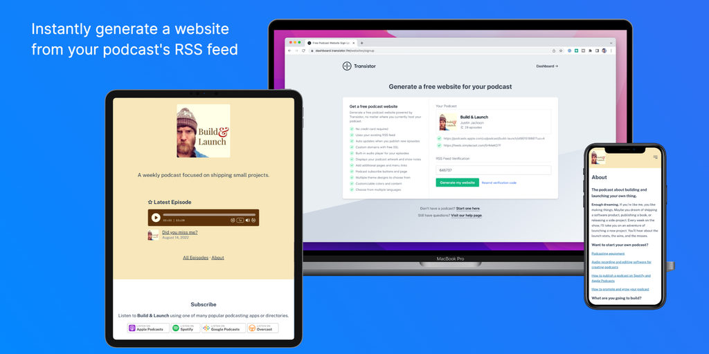 Free Podcast Website Builder - Generate a website for your podcast from your RSS feed | Product Hunt