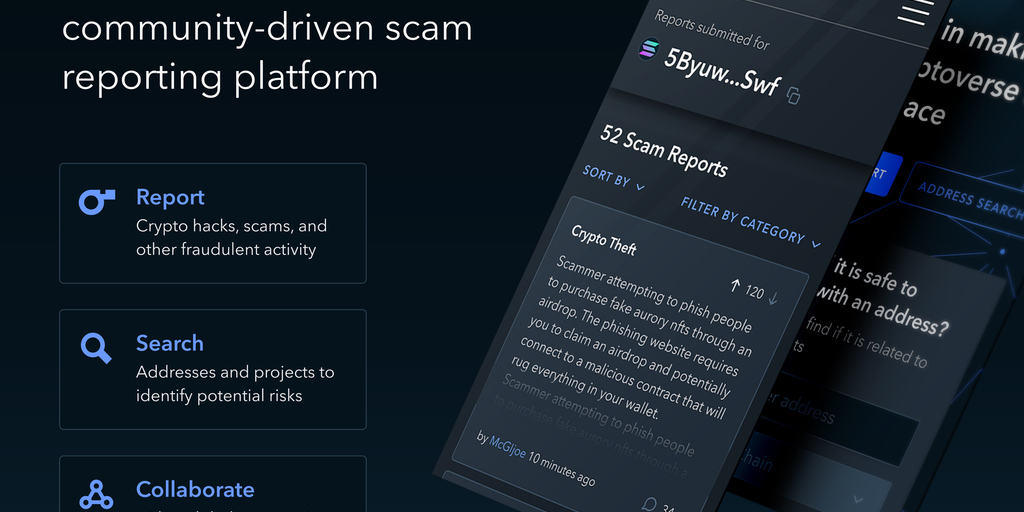 Chainabuse is a multi-chain community platform that lets anyone, anywhere file a report on and learn about crypto hacks, scams, and fraudulent activity so they can more safely participate in the growi