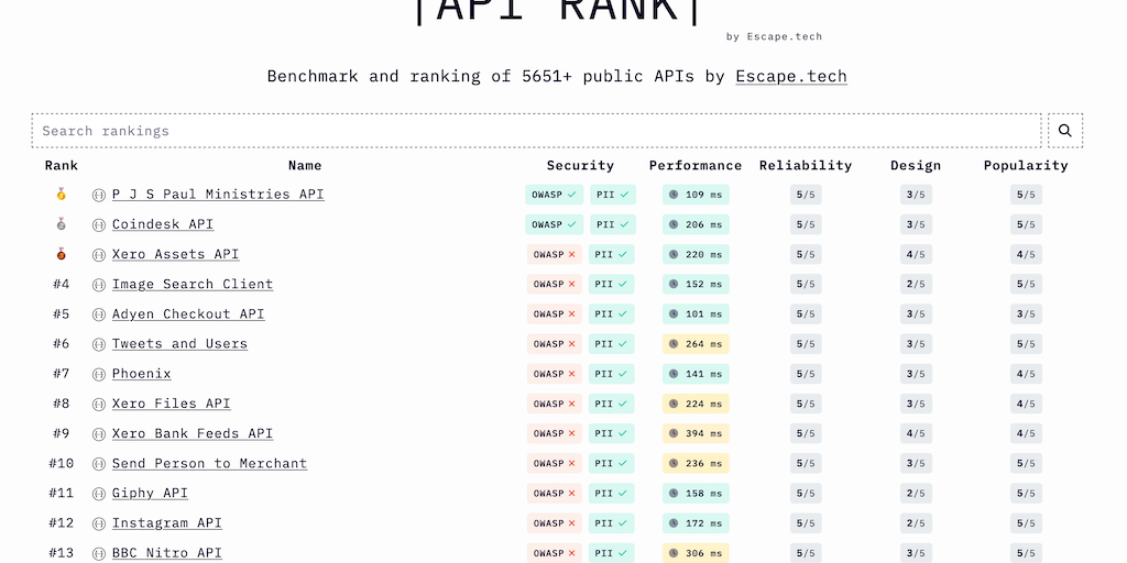 APIRank.dev - A ranking of 5651+ public APIs on the internet | Product Hunt