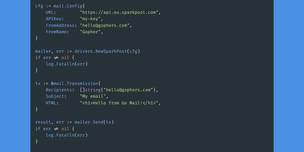 Go Mail aims to unify multiple popular mail APIs into a singular, easy to use interface. Featuring Mailgun, Postal, Postmark, SendGrid, SparkPost & SMTP. Email sending is seriously simple and lightwei