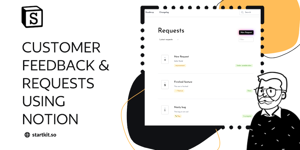 Customer Feedback made simple with Notion ❤️ Give your customers a voice with Startkit by collecting, organizing, and analyzing product feedback in one place using Notion.
