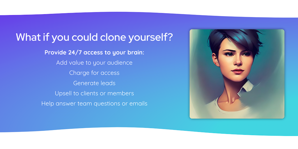 Create an artificially intelligent version of yourself that can coach or mentor in your style. Train your AI to add value to members, keep in touch with clients, build familiarity, generate leads, and