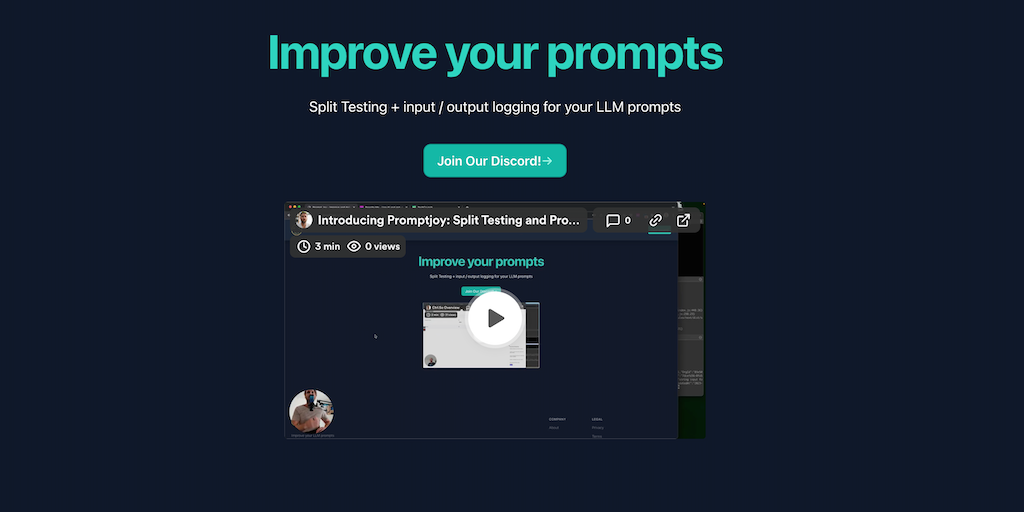 Prompt Joy is an open source tool that let's you do 2 main things: Log Log your llm requests so you can inspect the outputs. Split Test A/B test your prompts with ease to find out which prompts work b
