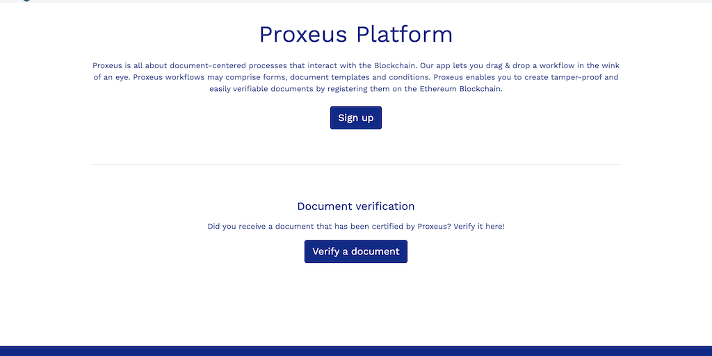 Proxeus is a platform for quick and convenient document digitalization, signing, processing, and distribution. It allows users to keep their important documents secure and registered on the blockchain