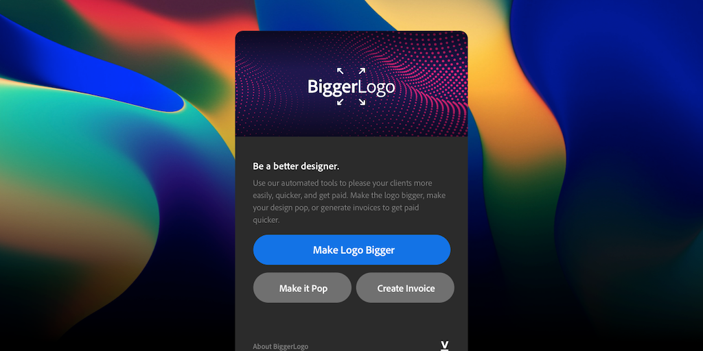 I built a Photoshop plugin for your clients - so you don't have to. BiggerLogo is a custom built Photoshop plugin to make your design job, so much easier. Make it pop.