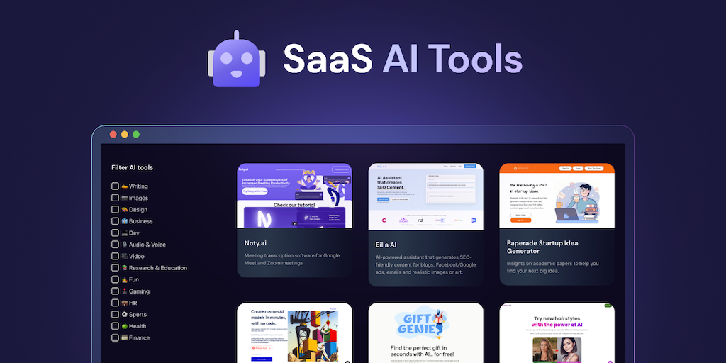 SaaS AI Tools is a growing directory of 400+ AI tools to help supercharge your creativity and business. Stay up-to-date with daily AI news and tools. 100% free to access and no payment required. New t