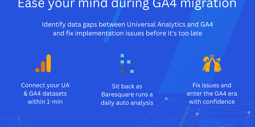 Identify data gaps between Universal Analytics and GA4 as you migrate to a GA4 implementation. 💰 Free 🧑💻 No-code ⌚ 2-min setup 🤖 Automated daily analysis 🔔 Alerts when issues exist 💡 Recommendations
