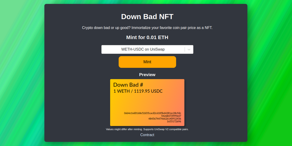 Down Bad NFT - Immortalize the price of a pair as NFT Remember it forever | Product Hunt