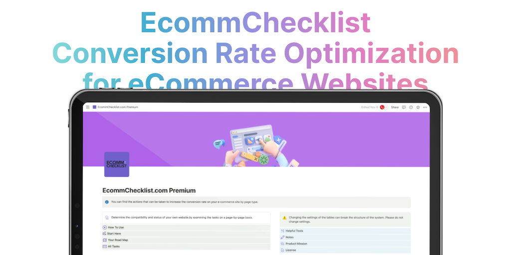 EcommChecklist Notion Template - Create eCommerce conversion roadmap using drag & drop system | Product Hunt