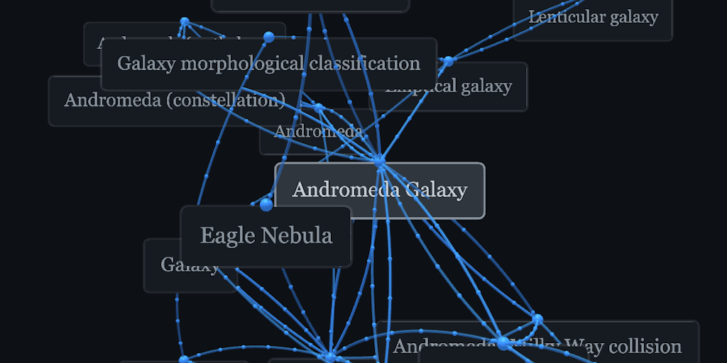 Navigate Wikipedia in a 3D graph view. Discover new connections between articles based on how others have browsed Wikipedia in the past.
