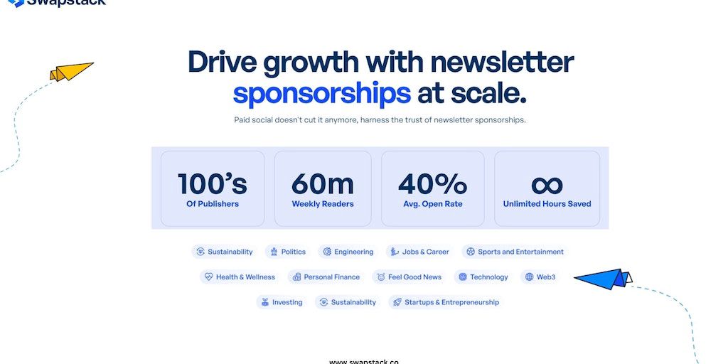 Grow your affiliate program with Swapstack Extend your affiliate program to 40M email newsletter readers and drive more conversions. 🔌 Connect your affiliate program 👨🏻🎨 Write a compelling ad 💌 Publi