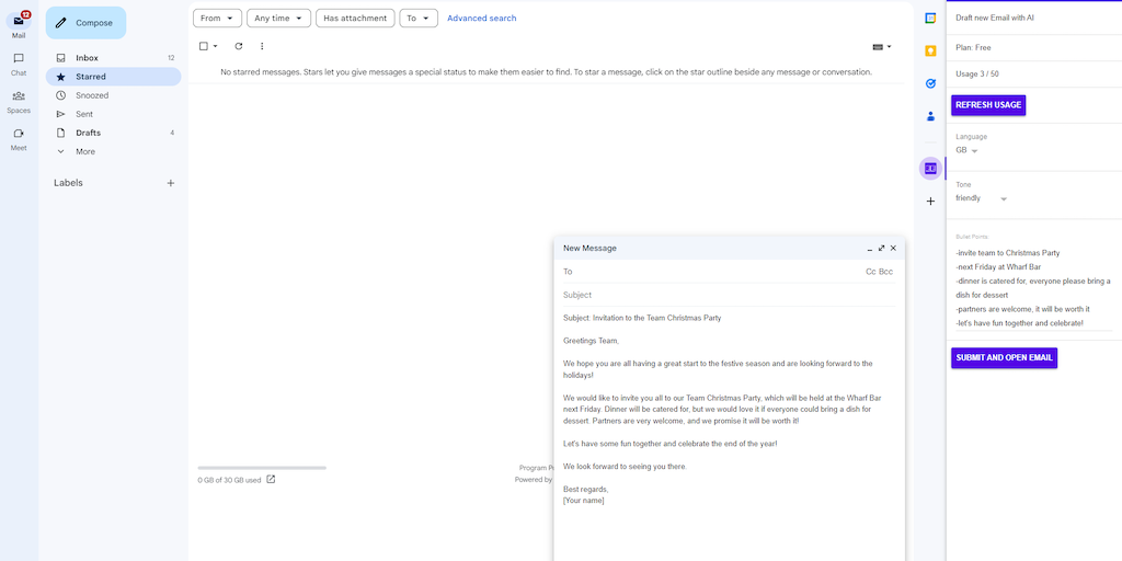 EffortlessEmail adds smart AI functionality straight into your Gmail User Interface or your Browser. It turns bullet points into a fully-formulated Email.