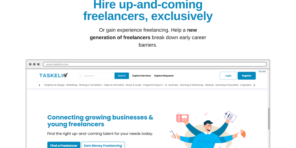 Taskelio lets buyers hire up-and-coming freelancers, exclusively. Save money, access freelancers that are current with the newest skills & tech, and help them overcome early career barriers. Young tal