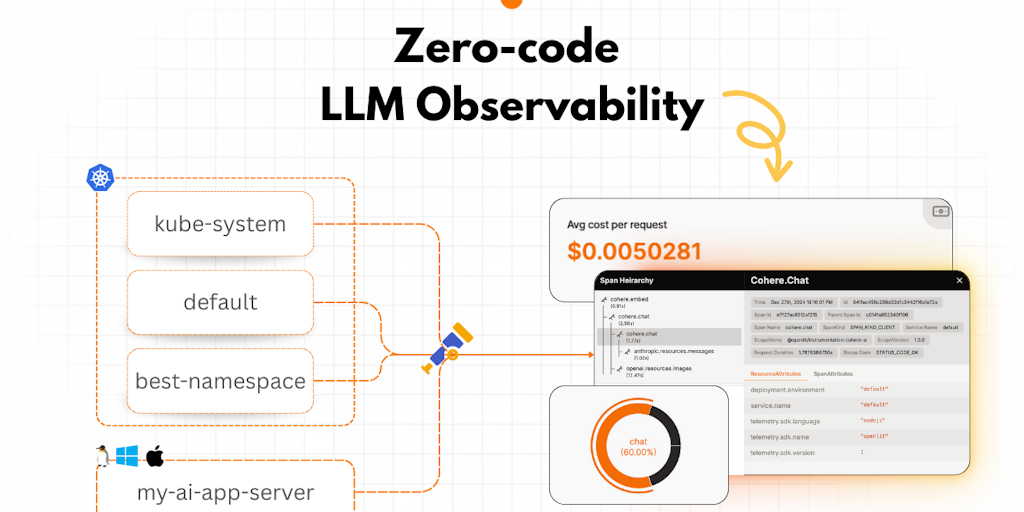 OpenLIT provides zero-code observability for AI agents and LLM apps. Monitor your full stack, from LLMs and VectorDBs to GPUs, without changing any code. See exactly what your AI agents are doing at