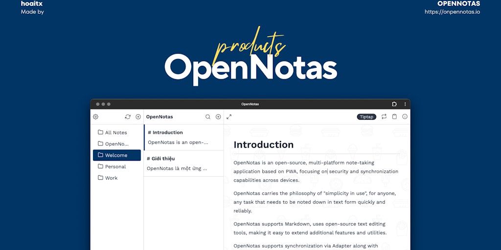 OpenNotas is an open-source, multi-platform note-taking application based on PWA, focusing on security and synchronization capabilities across devices.