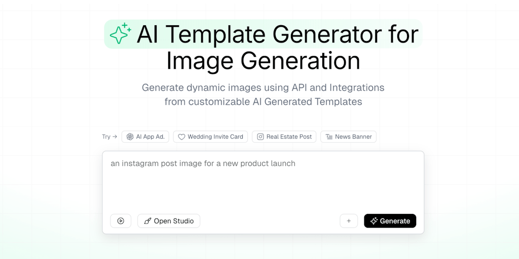Create and automate marketing assets at scale. Generate dynamic images from AI Generated templates via Rest API, SDKs, Zapier and other integrations