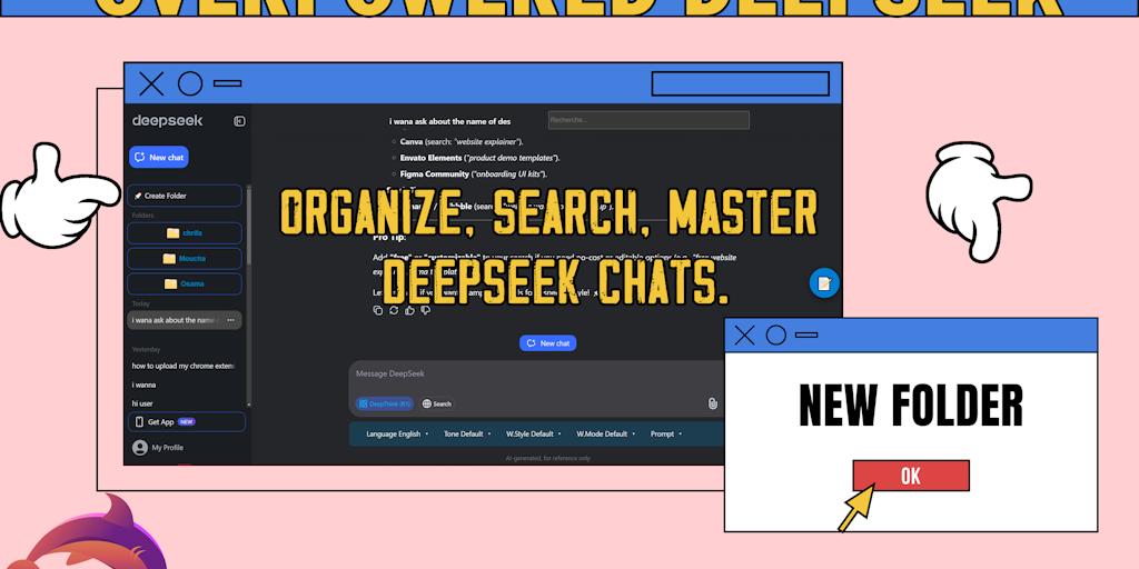 Tired of ‘Server Busy’ errors? This DeepSeek extension auto-retries requests, organizes chats into folders/subfolders, and saves custom prompts. Track stats, search instantly, adjust AI settings, and