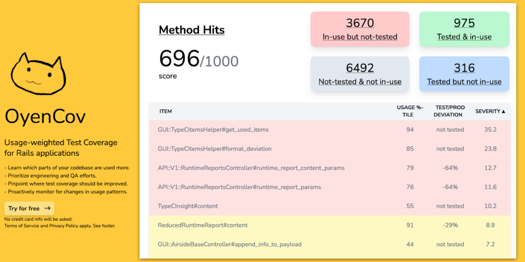 OyenCov - Usage-weighted test coverage service for Rails apps | Product Hunt