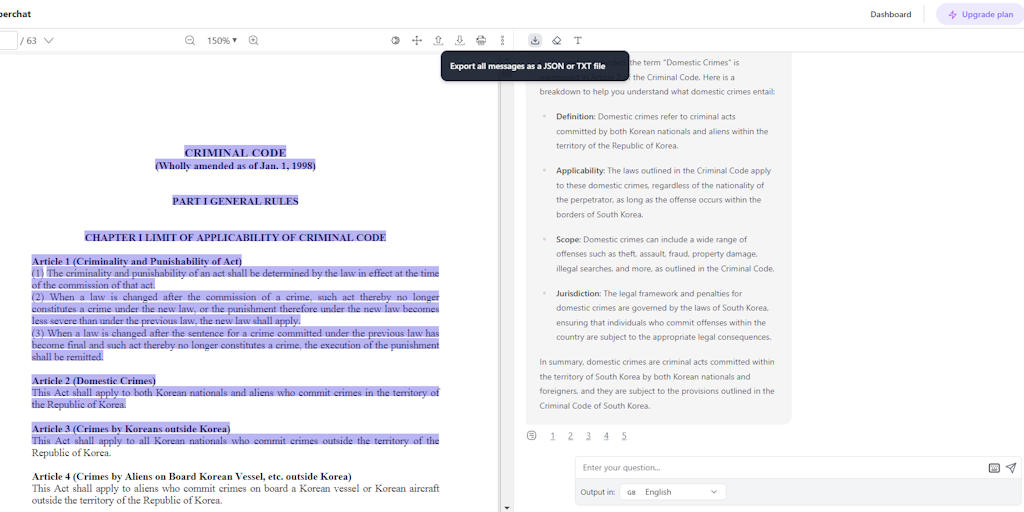 Read, understand, summarize and search through lengthy documents in seconds, not hours. Effortlessly chat with documents using AI-powered interactions, access multiple document types, export conversat