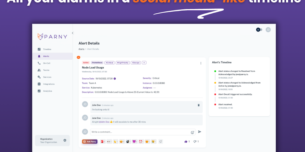 Parny is the all-in-one solution for on-call management and monitoring alert services. It leverages a social media-style experience and AI-powered solutions.