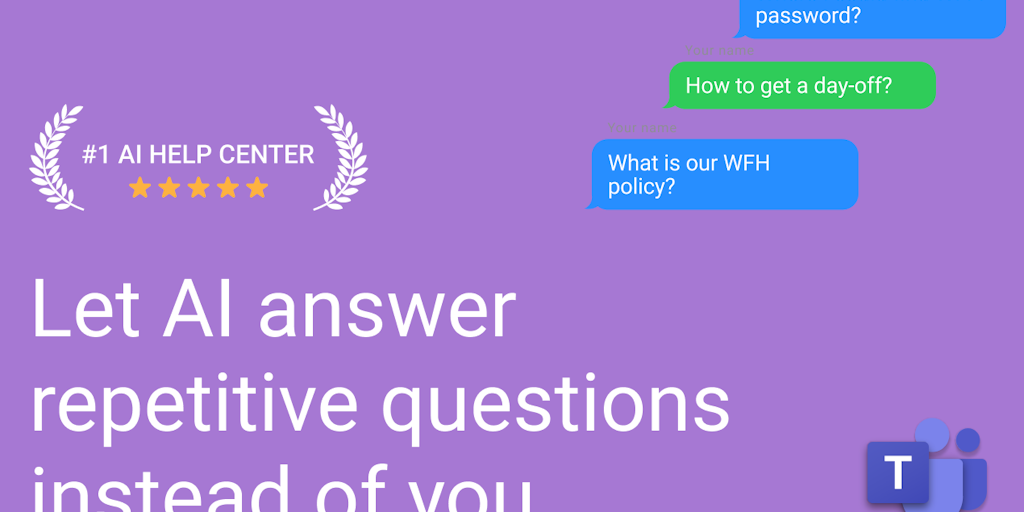 Effortlessly turn your company knowledge into a powerful, always-evolving AI-powered help center that understands and supports your colleagues and customers right in Microsoft Teams.