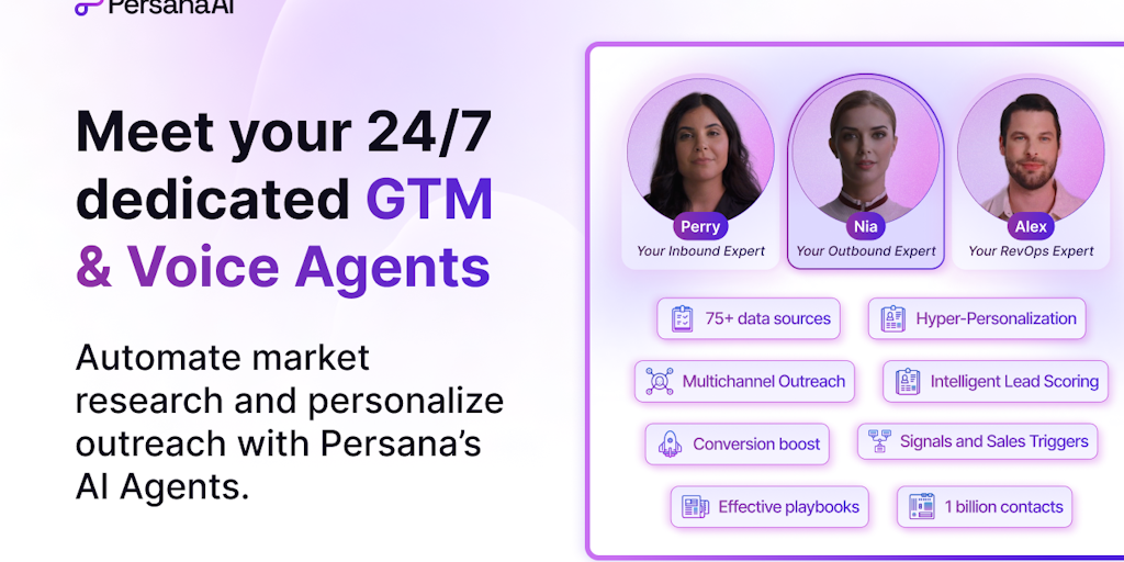 Persana's AI-powered GTM and voice agents supercharge sales and marketing teams with 24/7 pipeline generation and enrichment. Access 700M+ contacts and 300M+ companies along with 75+ data provider and