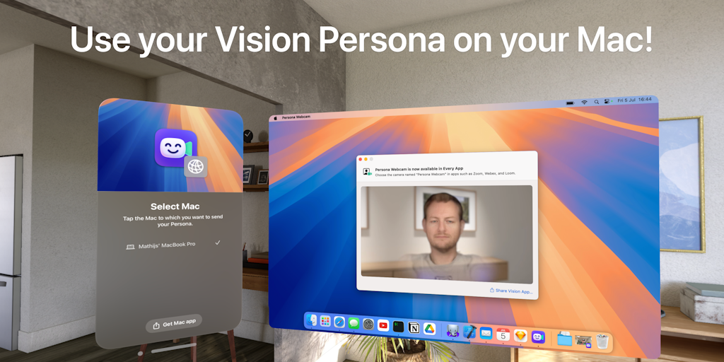 Use your Vision Pro Persona on your Mac! Perfect for conference calls and video recordings with Mac Virtual Display. Easy setup, simply select your Persona as a camera in any Mac app, even adjust the
