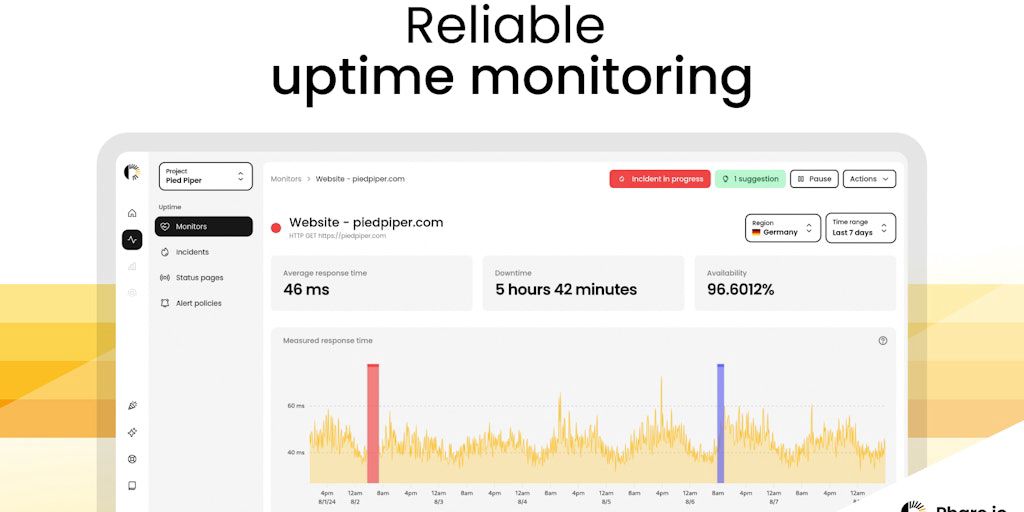 Monitor your website from 11 regions, collaboratively manage incidents and communicate with your users through a sleek status page, hosted on your own domain name.