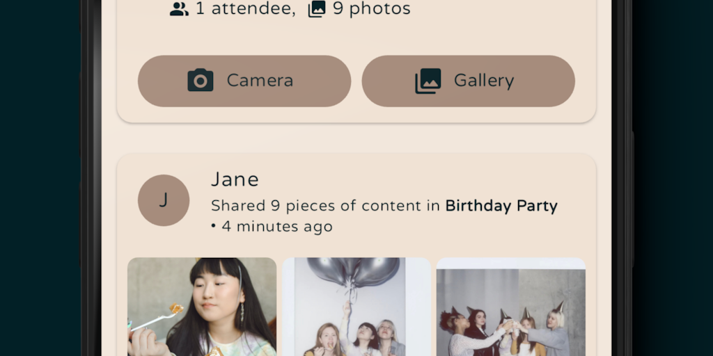 Photo Dump helps facilitate gathering photos from your friends and family. Nothing is worse than having to hunt people down after an event to ask them if they took any photos of you. Be sure you have