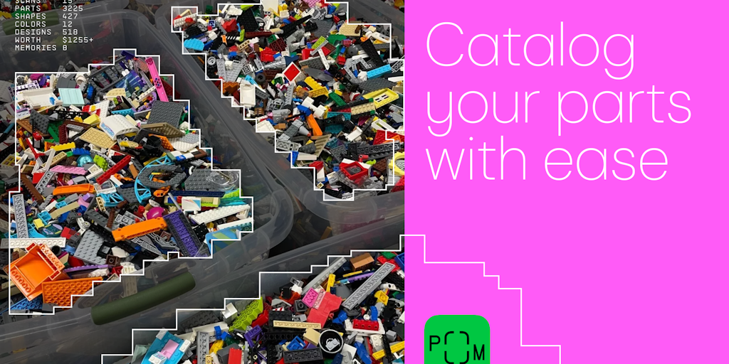 A game-changer for anyone who loves building or misses the feeling of joy their bricks used to give them. Using cutting-edge recognition technology, Pileometer helps you organize your parts, discover