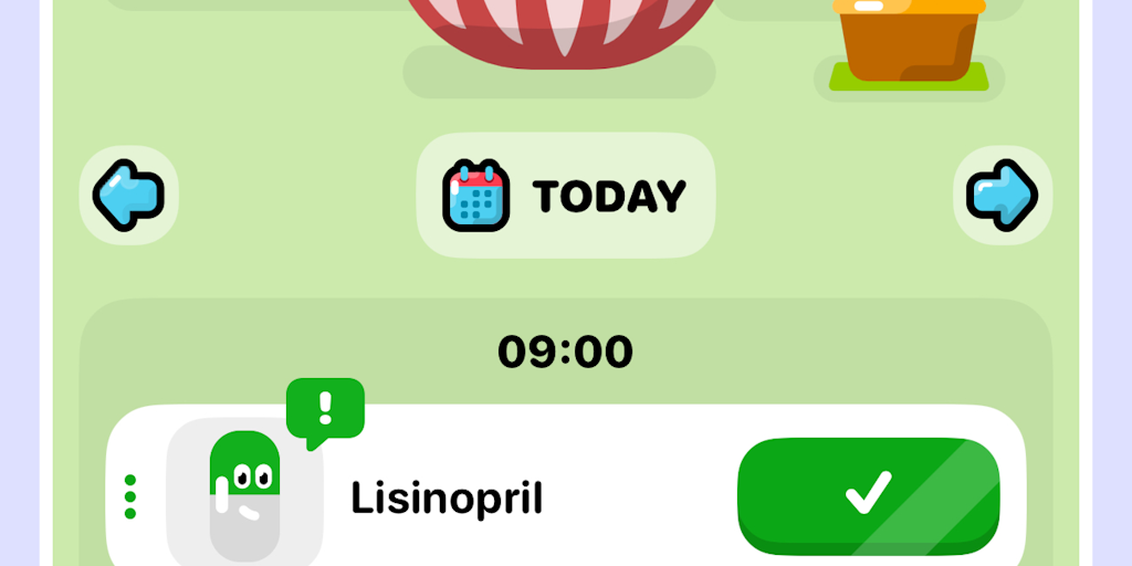 A cute mascot that reminds you to take your medications & supplements on time. But watch out — he gets increasingly annoying if you miss a dose!