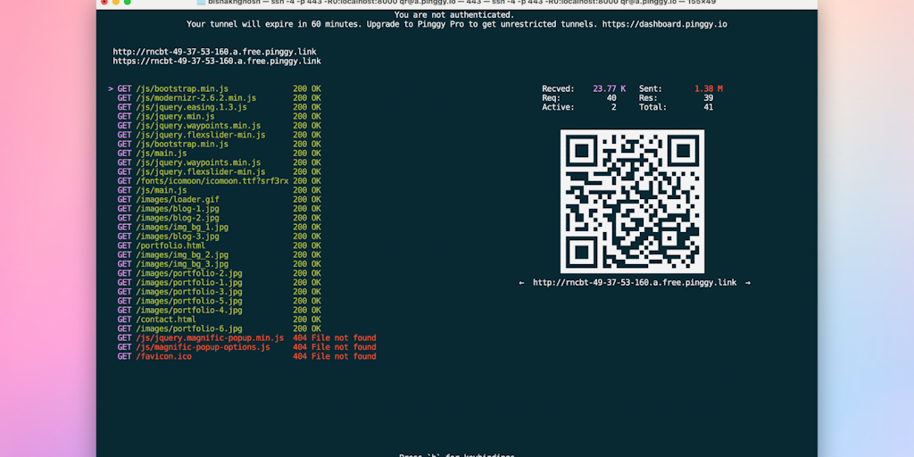 Pinggy provides secure tunnels to localhost with a single command for developing, testing, and deploying your website or app easily. Create HTTP, TCP or TLS tunnels to your Mac / PC even if it's behin