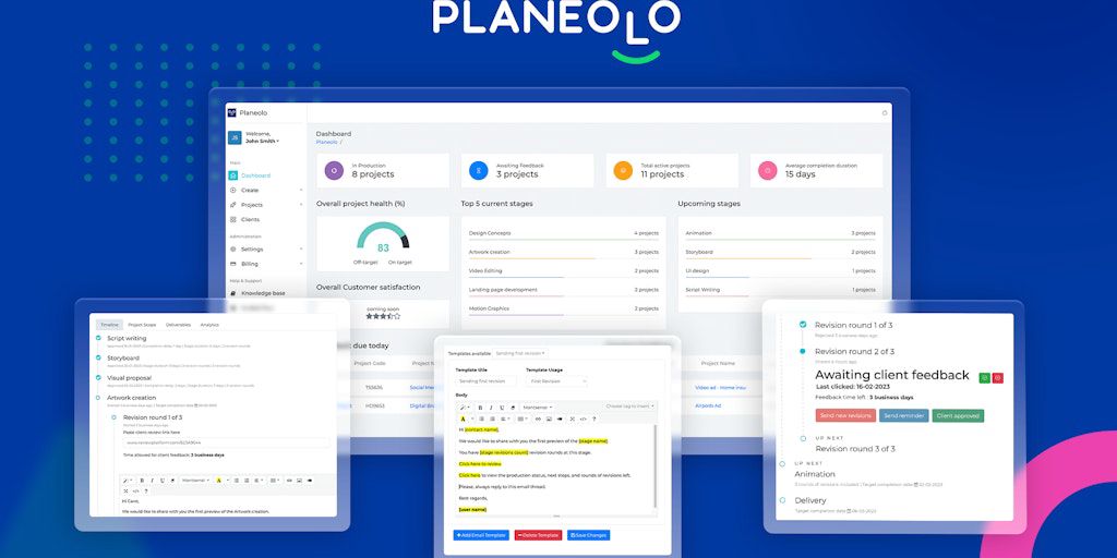 Planeolo streamlines tasks, reviews, and client communications. Portal for tracking, approval, and accessing deliverables. Detailed client analytics. Seamlessly integrates with your workflow for faste