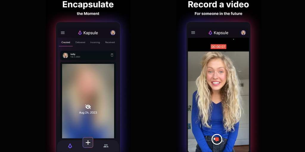 Kapsule (short for time capsule) is a social app that allows users to record and share video messages with anyone in the future. Not in hours, days, or weeks - but in months, years, or even decades.